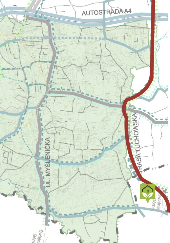 Wg planów miasta nowa trasa będzie łączyć Swoszowice z ul. Kamieńskiego, ma przebiegać w odległości ok 500m od inwestycji Zielone Zacisze. Wraz z Trasą Tuchowską jest planowana trasa rowerowa.